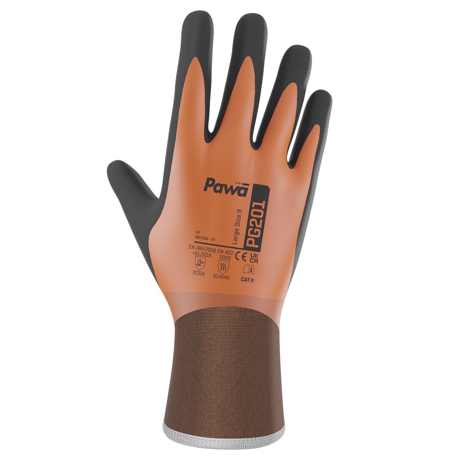 The Pawa PG201 glove features fully coated dual dipped technology. The first layer of coating provides water resistance, and the second gives this glove excellent grip. In addition to this, the PG201 remains comfortable thanks to its seamless knitted liner, offering superior performance in demanding conditions.