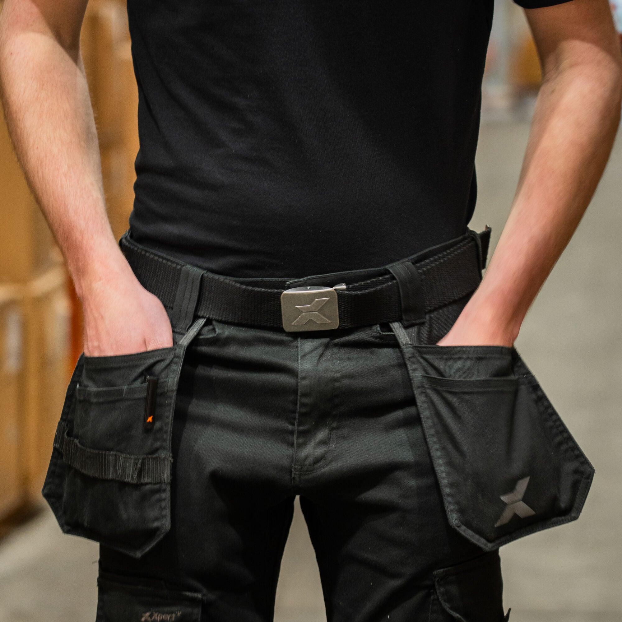 Tough canvas webbed work belt with heavy duty metal buckle. The Xpert core work belt is an essential piece of kit for your work trousers, especially when you load up your pockets with tools. 120cm total length, can be cut to size if required.