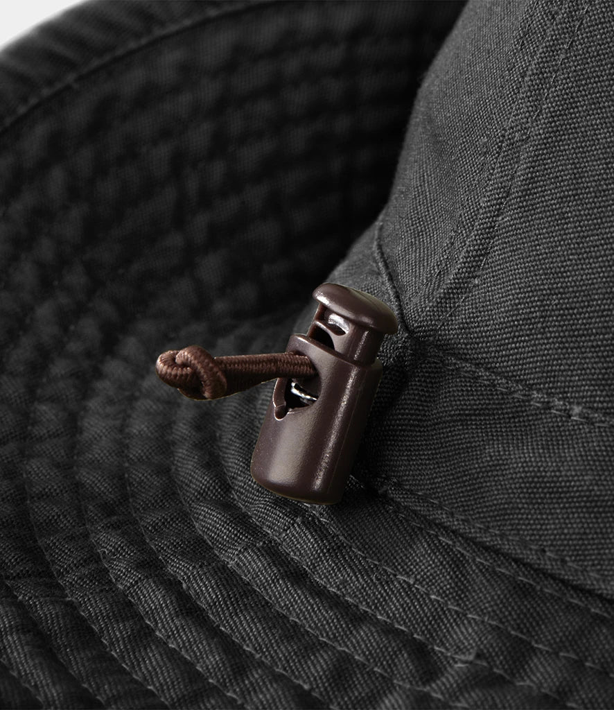 - Chin strap with leather toggle.