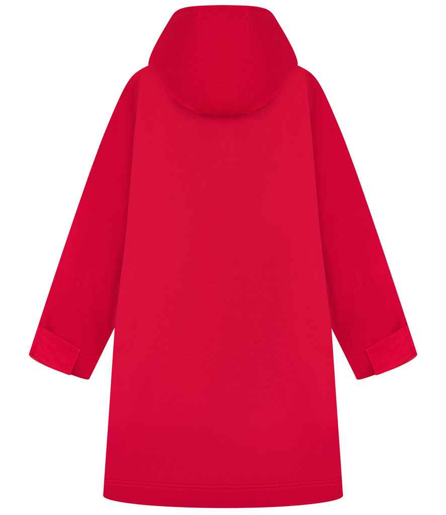 The ultimate team robe is made in a water resistant fabric with a cosy sherpa fleece lining and three-piece hood. The roomy fit with double-ended full front zip allows wearers to keep warm and get changed underneath the robe. Perfect for wild swimming or wearing on team sidelines. Zipped pockets with fleece lining keep hands warm with multiple inner pockets for keeping belongings safe. Topped off with a large embroidery zip for access to directly decorate.
