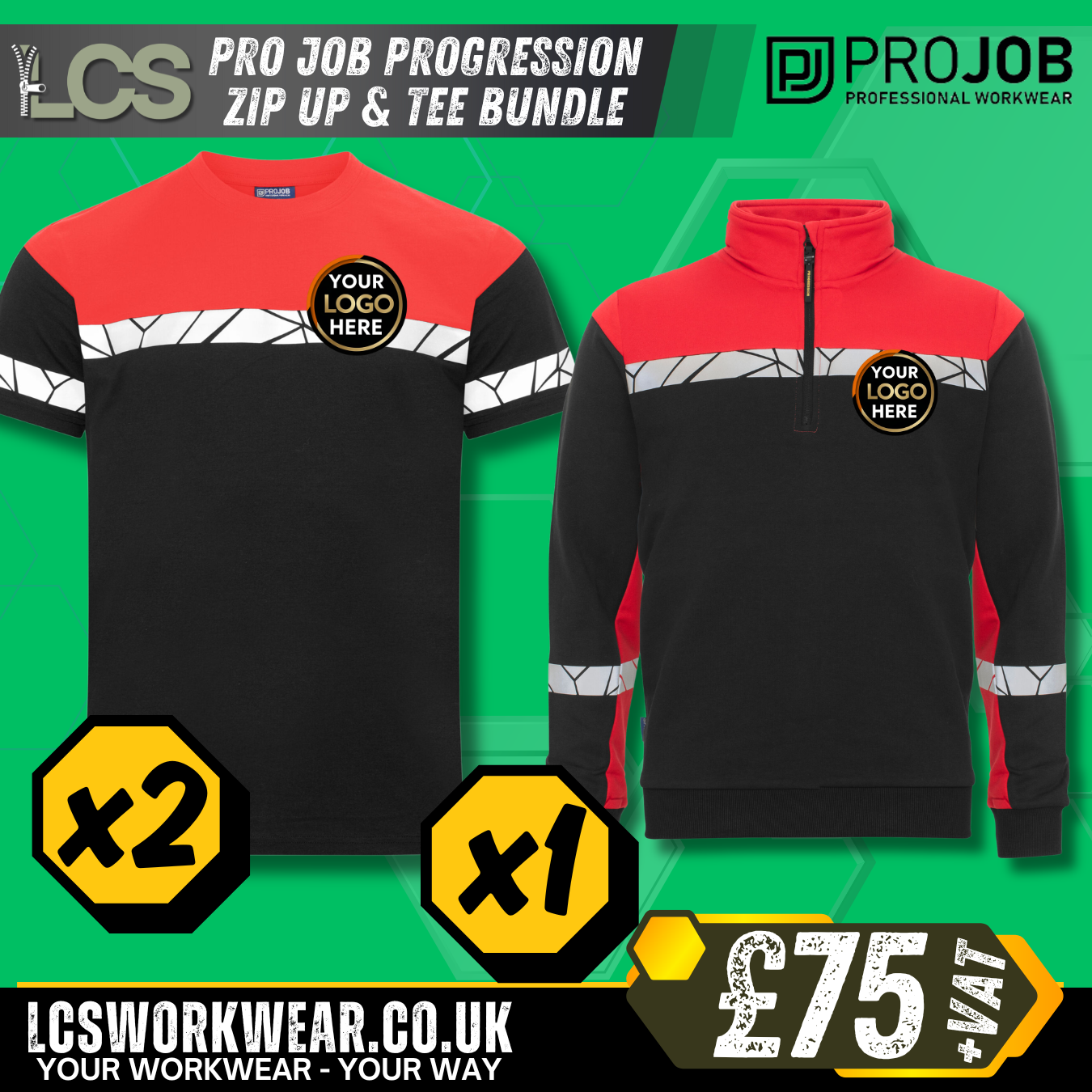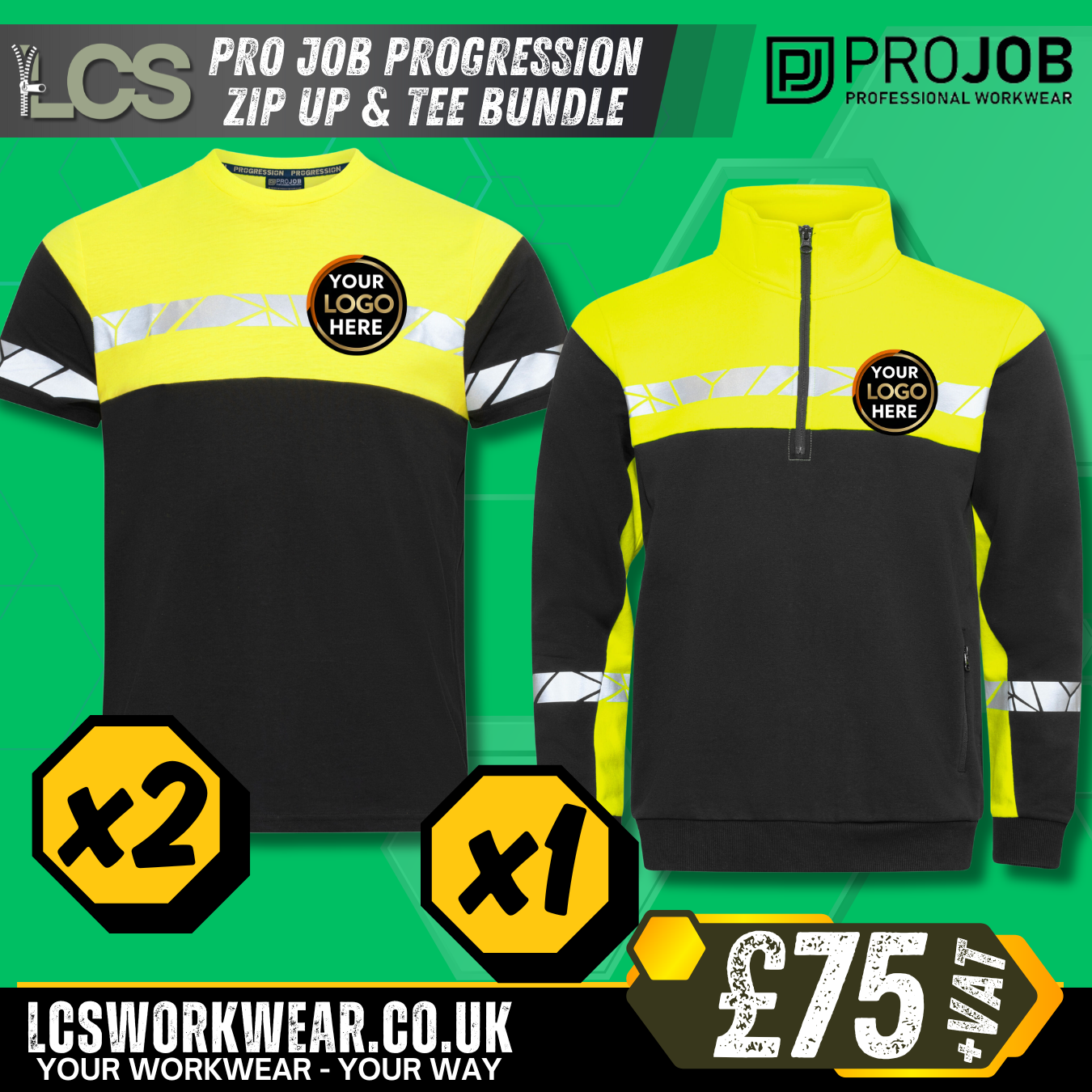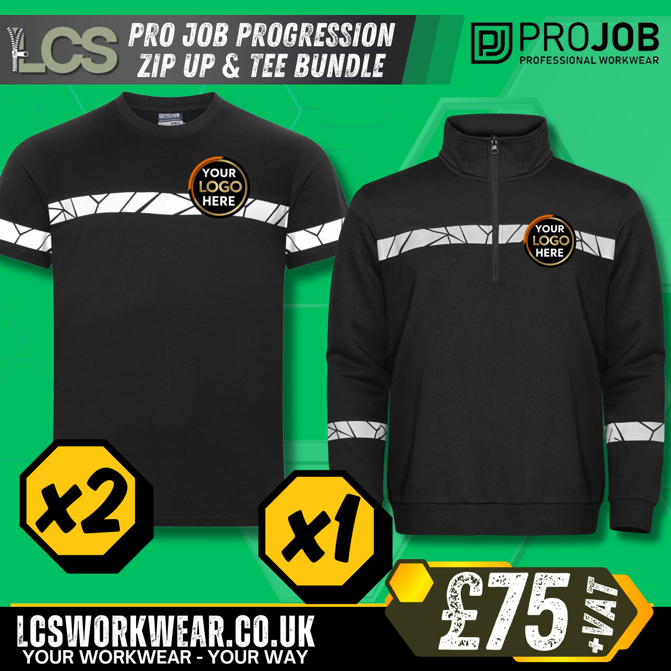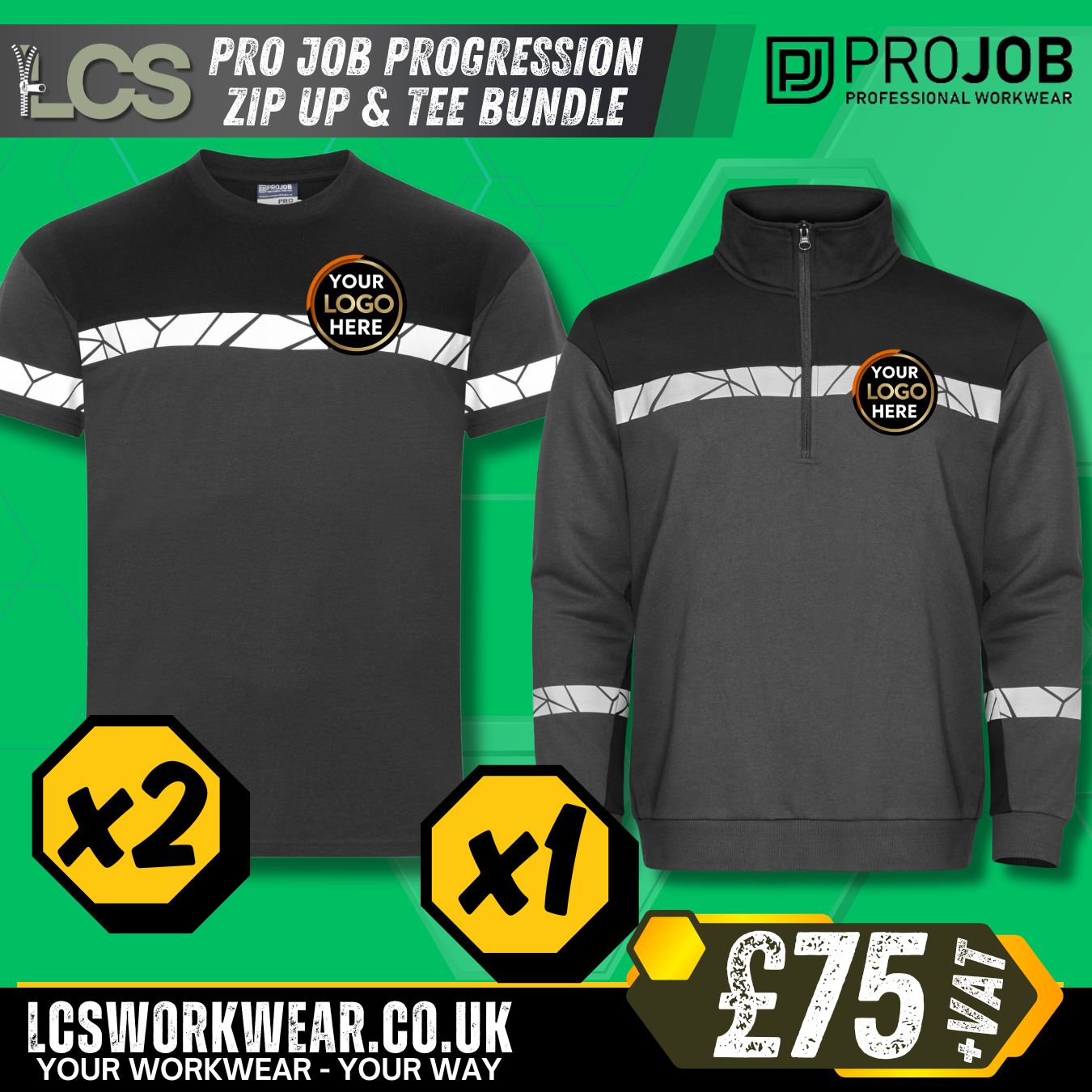 PROJOB Progression Workwear Bundle – 2x T-Shirts & 1x Zip Sweatshirt (Logo Included)