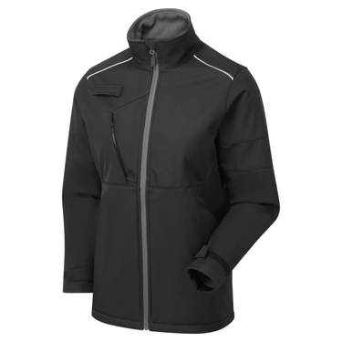 The System Eco 3 Layer Black/Grey Softshell Jacket for women is a versatile and hard-wearing softshell designed to deliver comfort, protection and a contemporary fit in changing weather conditions. Made using a recycled three-layer softshell construction, it offers wind resistance and light water protection while maintaining breathability throughout the working day.