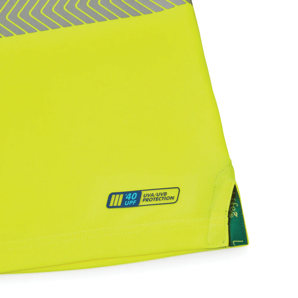 This eco-conscious, high-performance T-shirt is made from a breathable blend of 60% recycled polyester and 40% bamboo, delivering natural comfort and long-lasting durability. It features a ribbed round neckline with a bamboo-rich trim, along with a side-split hem for ease of movement. Designed for visibility and performance, it includes heat-applied stretchy segmented reflective tape and is treated with Rudolf antimicrobial technology to help maintain freshness. With a natural UPF 40+ rating, it also provides reliable protection against the sun.