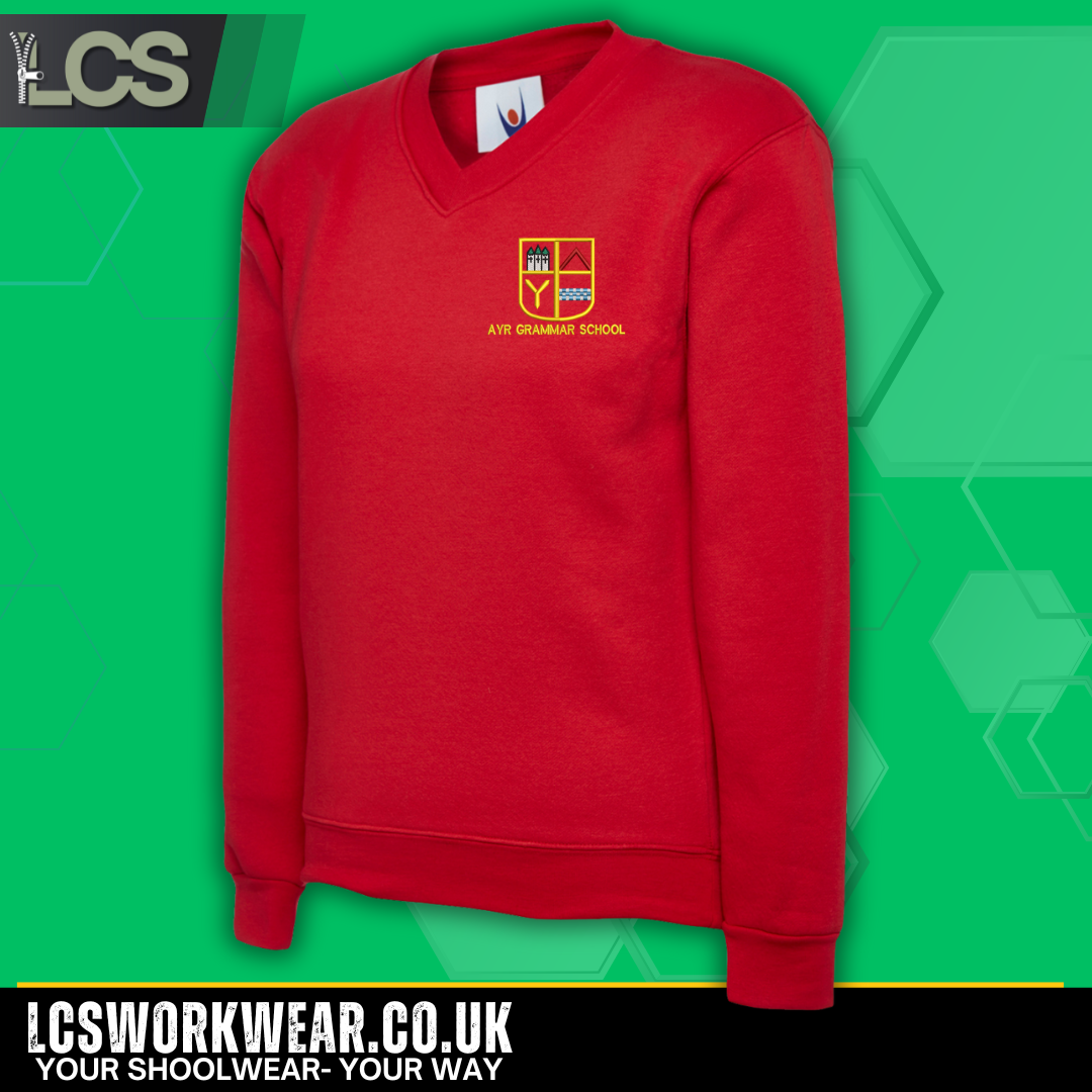 Ayr Grammar School UNEEK Classic School V-Neck Sweatshirt - Red