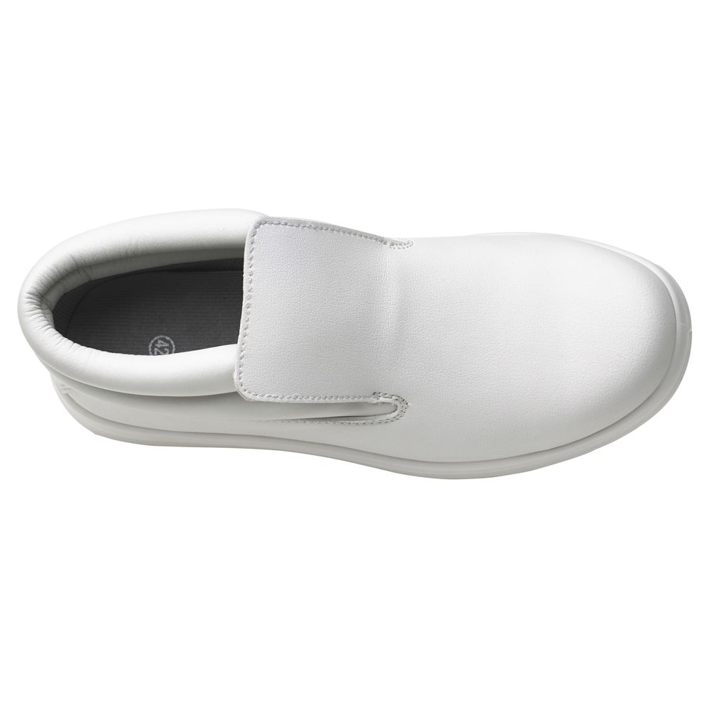 Our lightweight minimal design all white padded ankle boot is a great choice for all day support and comfort. It has breathable liner with a steel toe cap to keep you protected at all times. Perfect for use in a variety of environments especially where hygiene and cleanliness are of upmost importance.