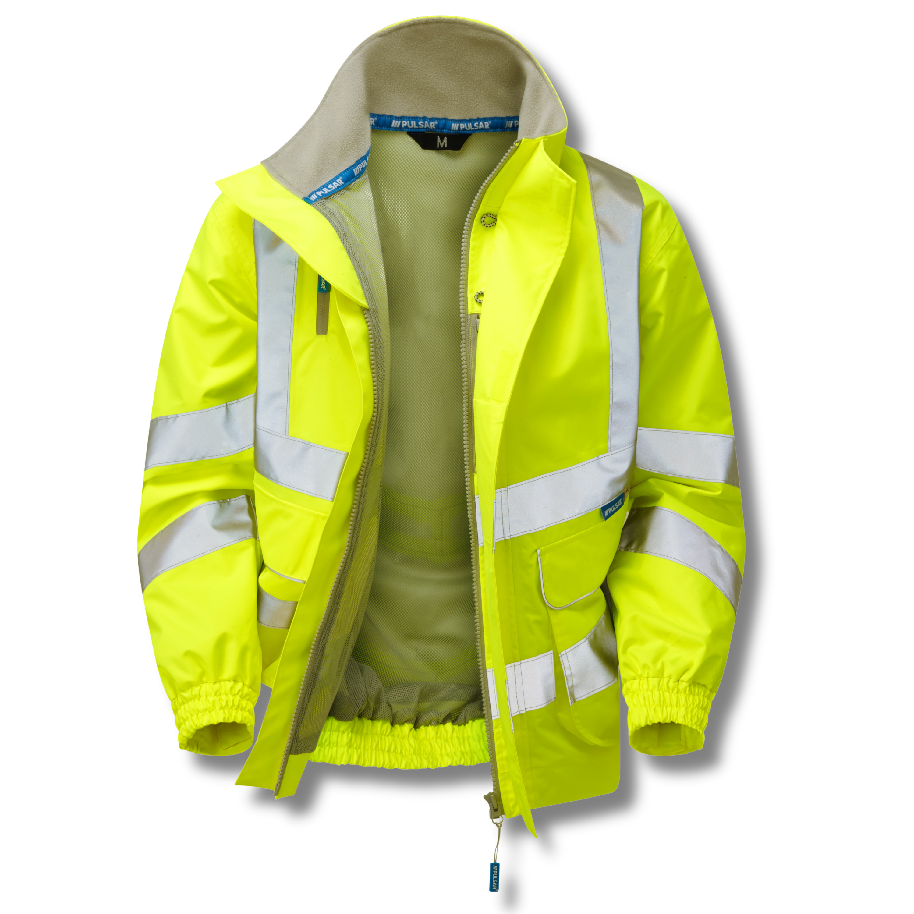 PULSAR® Hi Vis Yellow Mesh Lined Bomber Jacket - P533