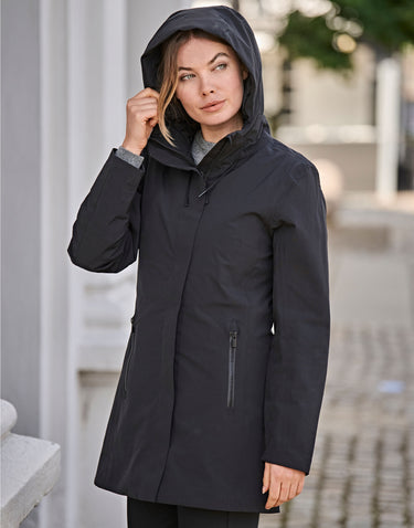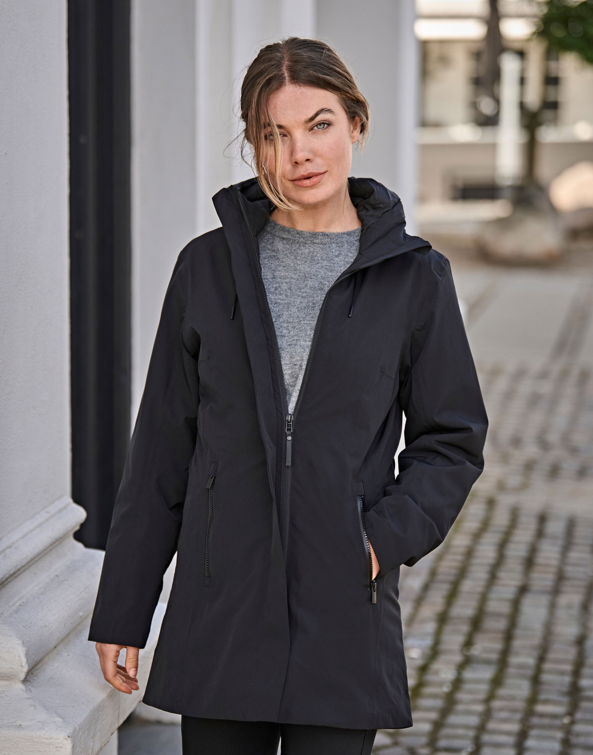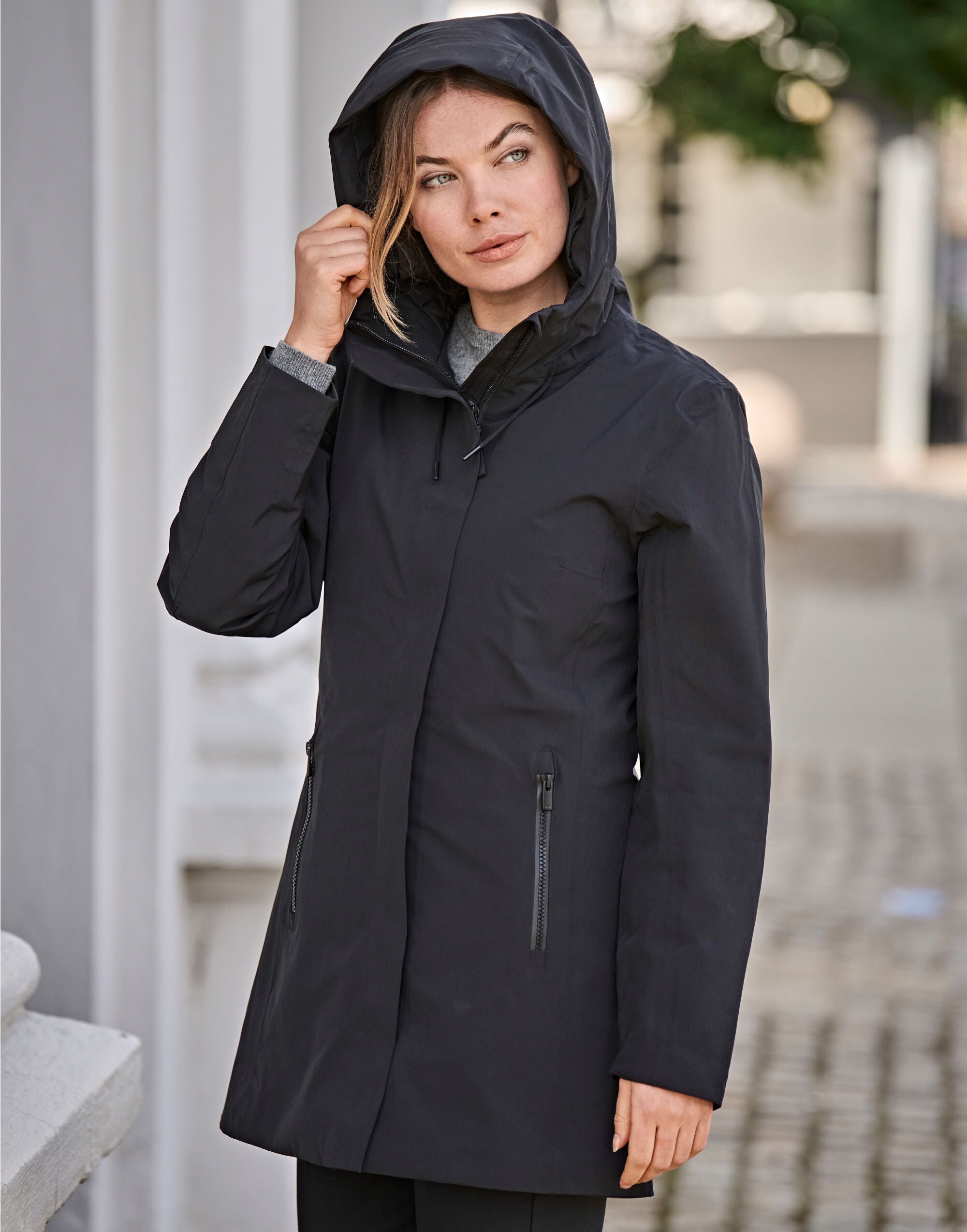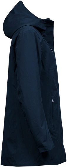 Long classic and modern, city jacket with a smooth and flawless surface for the modern businessman or woman. This jacket is crafted in material that is stretchable, and waterproof, insulated with premium DuPontTM padding. It has a high collar, large front pockets with warm lining, as well as a hidden closure with magnetic buttons and a practical two-way front zipper. The obvious first choice for your urban business ventures.