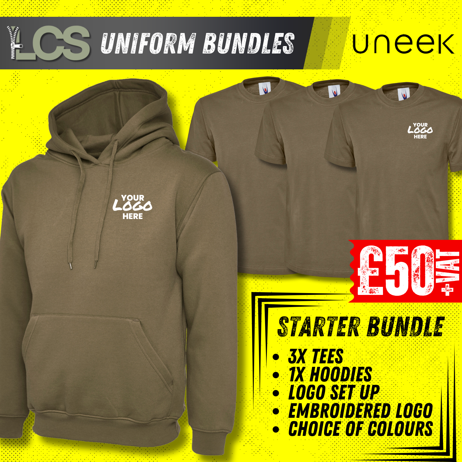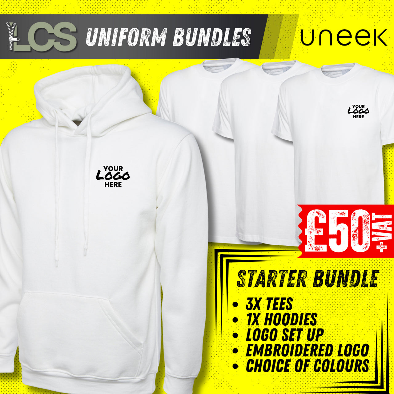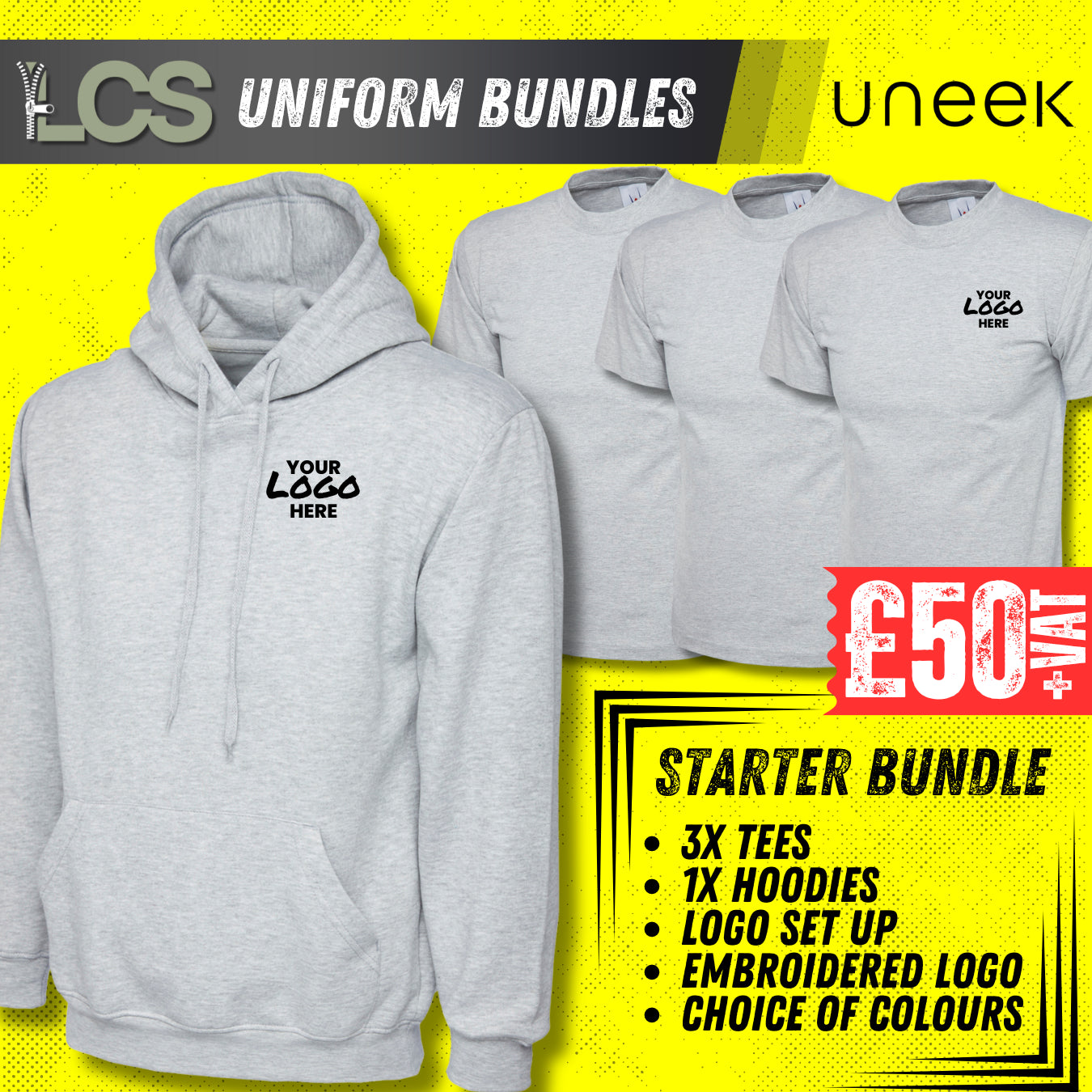When selecting this bundle please input all details with regards to sizes and colours into the comment section or selection boxes above. This will be confirmed again when we send across a logo sample. We will not embroider any garments until you are 100% happy with your logo sample. The sampling process usually takes around a week from placing the order and all orders are despatched within 3-4 working weeks.