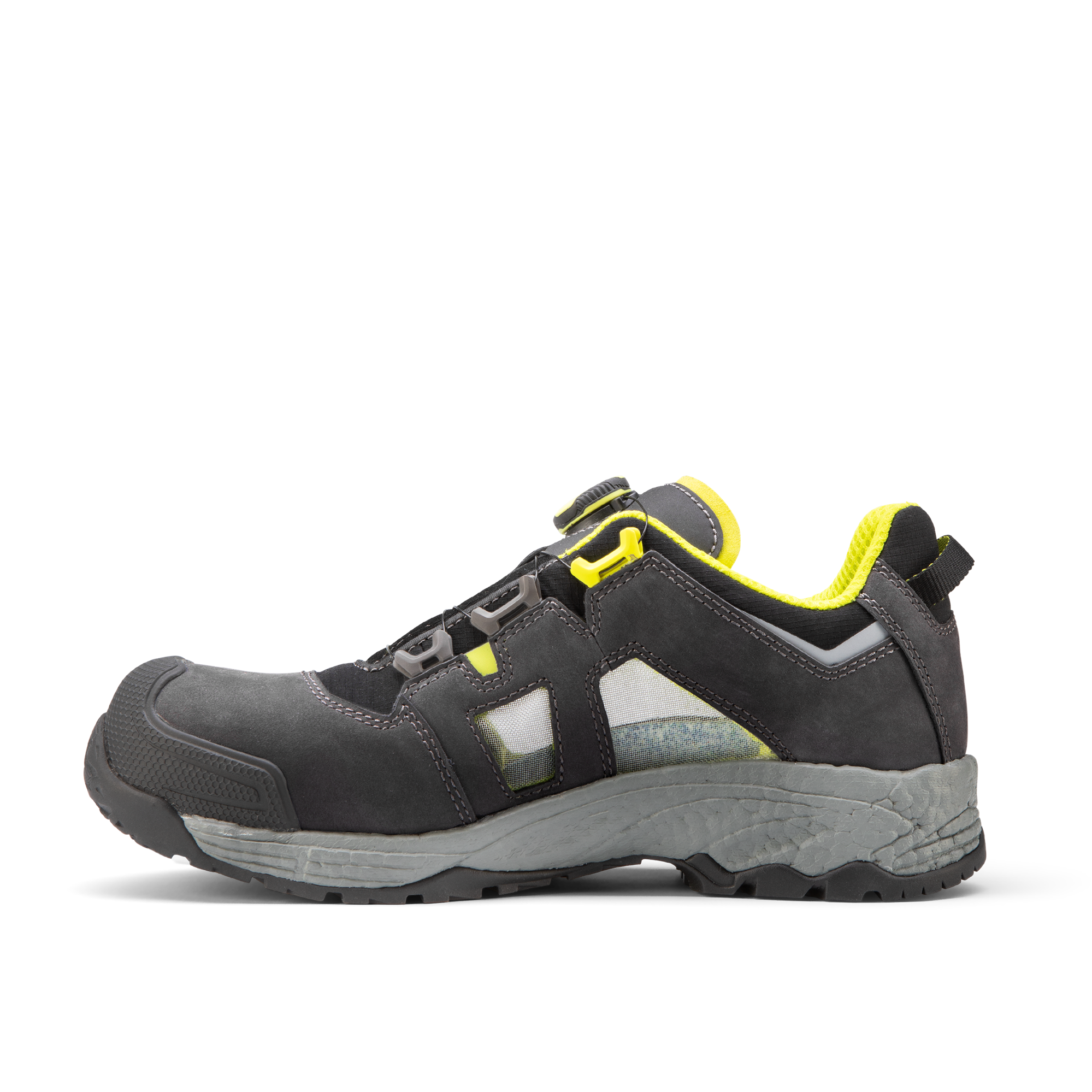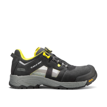 Vapor’s third generation is upgraded with several high-performance materials and components. The upper is a combination of LWG leather and special ripstop textile and breathable net. Classic configuration of the BOA® Fit System for a dialed in fit. 3D mesh lining made of recycled polyester. ETPU midsole with energy return and cushioning, which lasts over time. Dual TPU shanks are integrated in the midsole to maintain a market unique stability and torsional rigidity. The rubber outsole from Vibram® is very durable with good anti-slip properties. Insole from OrthoLite®, specially designed for the Solid Gear last, has superior rebound properties and is mainly made of recycled materials. ESD function according to EN IEC 61340-4-3:2018.